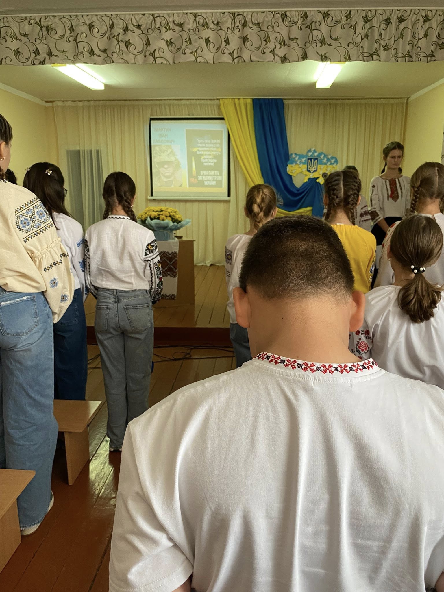 Учні з глибокою шаною і повагою згадали усіх односельців, які стали на захист рідної землі, хто перебував чи перебуває в лавах ЗСУ, та висловили їм велику вдячність. Вшанували памʼять усіх, хто віддав своє життя за Ураїну, зокрема і Мартича Івана